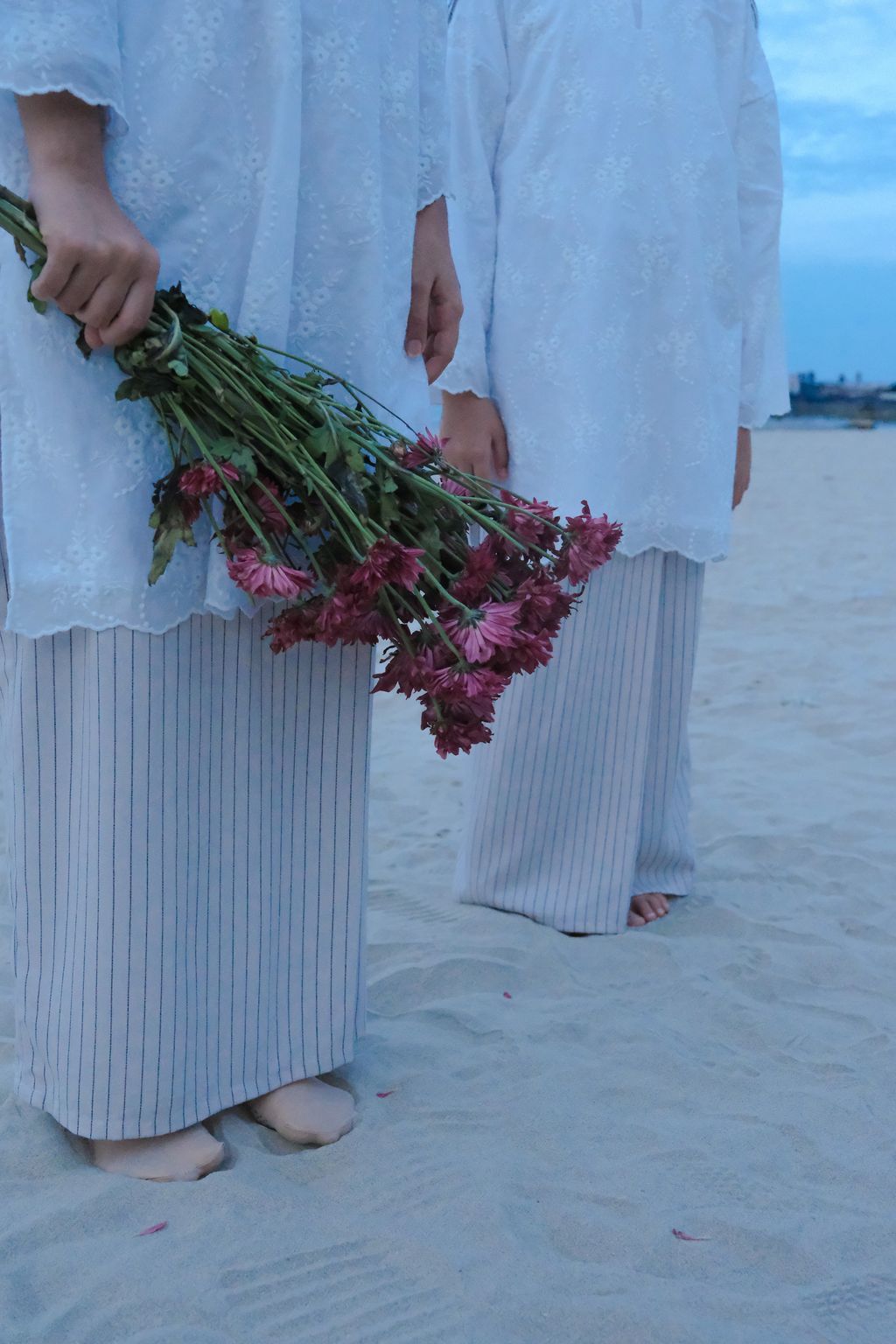 Fabric : Pure cotton emboidery fabric (top), 100% linen (skirt)