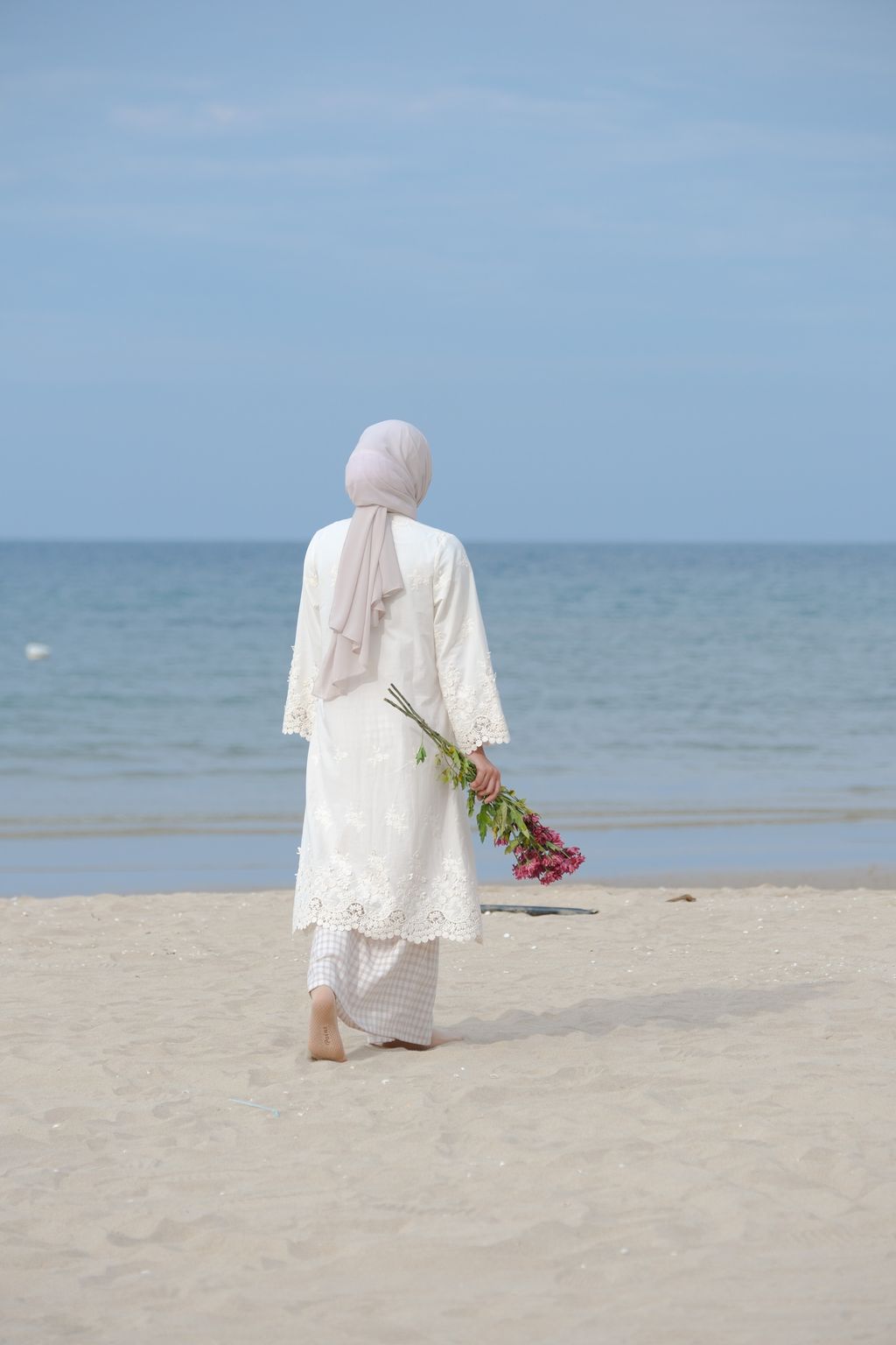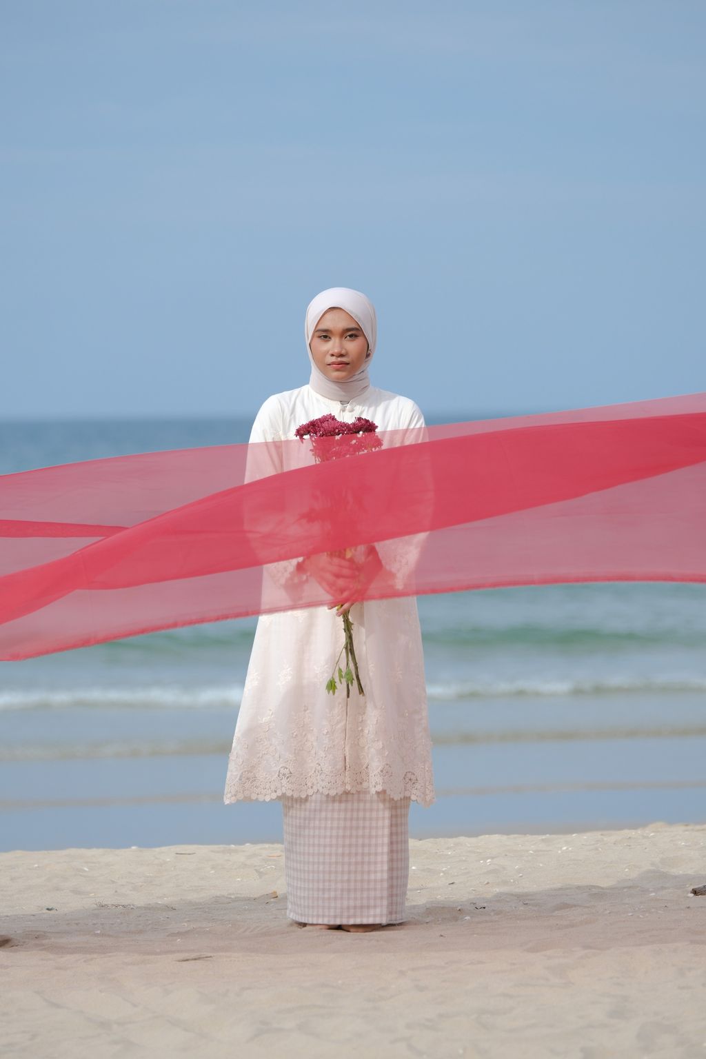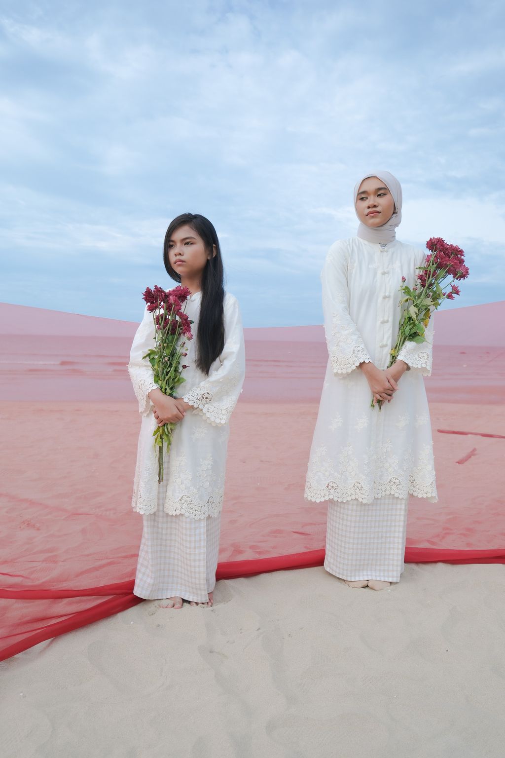 The Seri Embroidery Kebaya brings a contemporary touch to the traditional kebaya. It is designed with a loose fit to allow the wearer to move freely. The detailing at the neckline features a mandarin collar design that emphasizes the kebaya's style, complemented by double-covered buttons on each buttoned section, giving the kebaya a cleaner and more appealing look. By choosing high-quality heavy 3D embroidered fabric made from pure cotton, this kebaya stands out while still maintaining a minimalist aesthetic for the wearer.