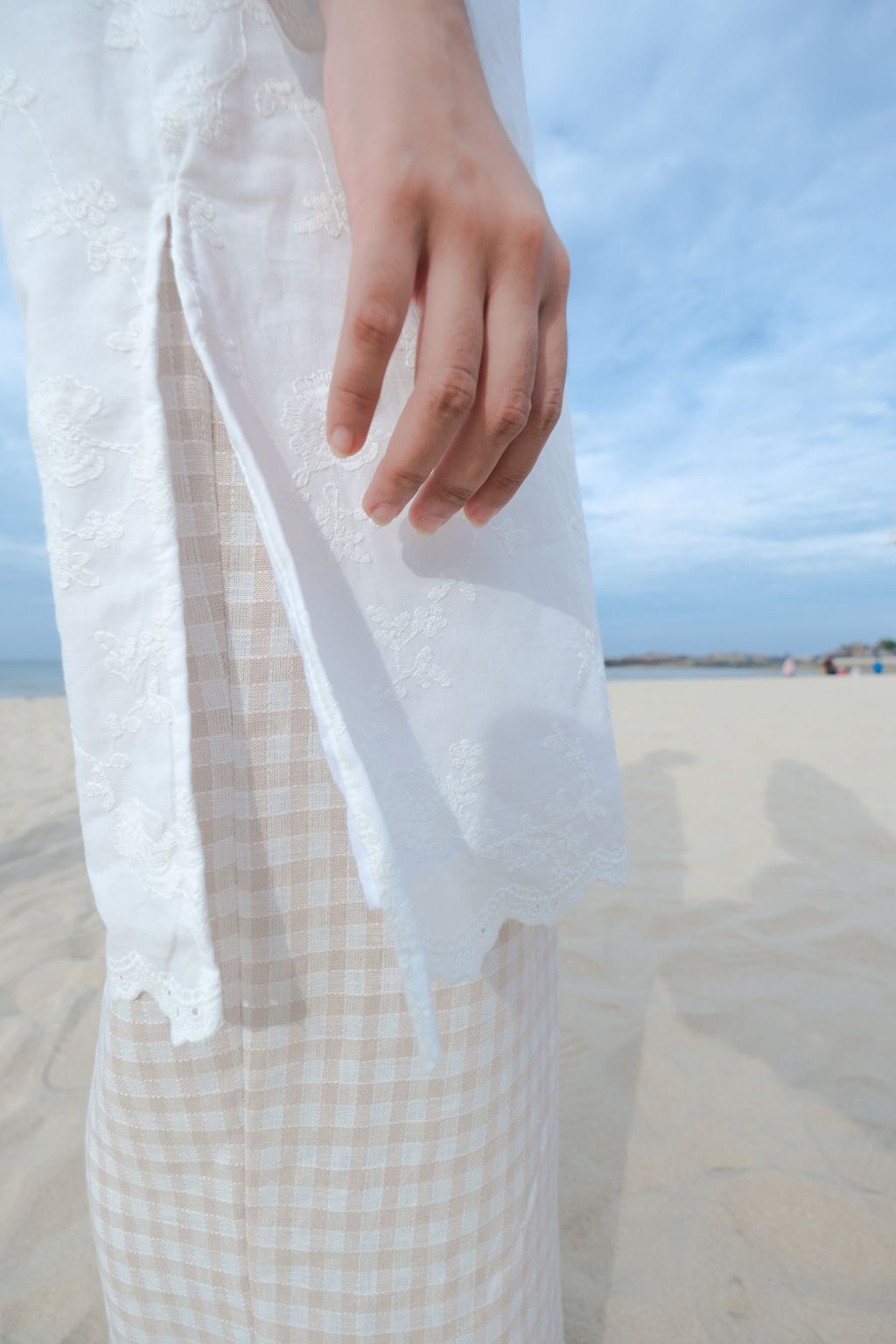 - The top is made from pure cotton emboidery fabric with wavy embroidered hem