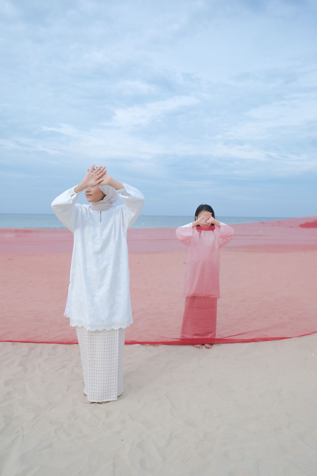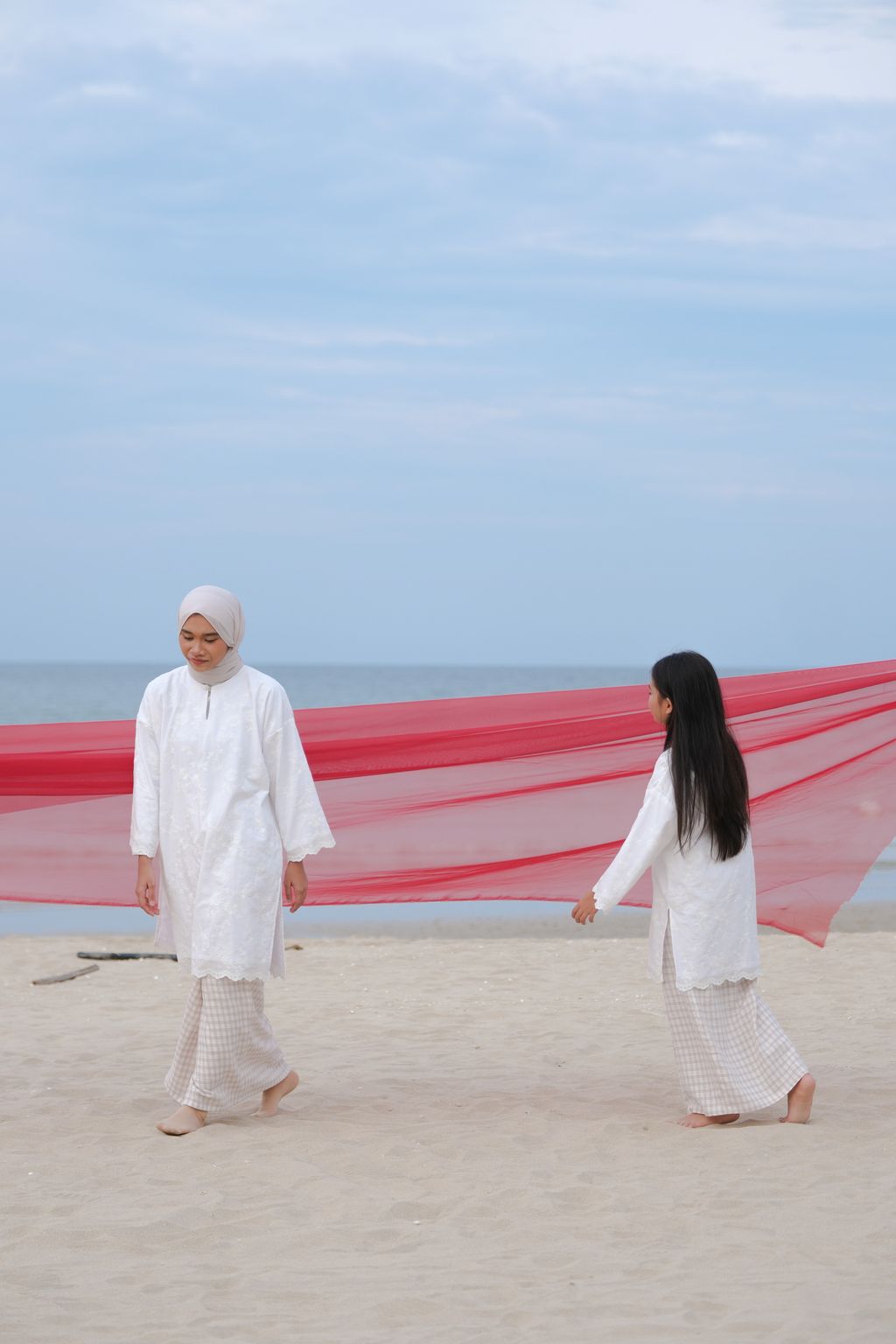 As for the bottom, it features the Mahrani skirt in Brown Checkered, showcasing a lipat batik (overlapped) design that lends a timeless charm to its features. The fabric is made from pure linen, ensuring that you and your little one enjoys the utmost comfort.