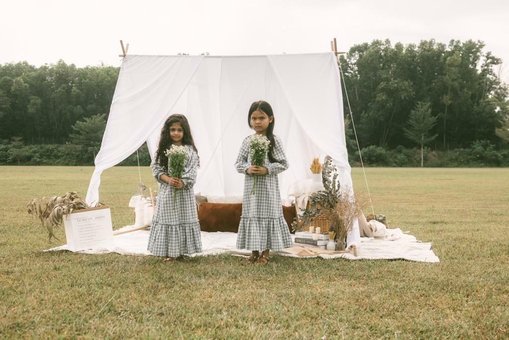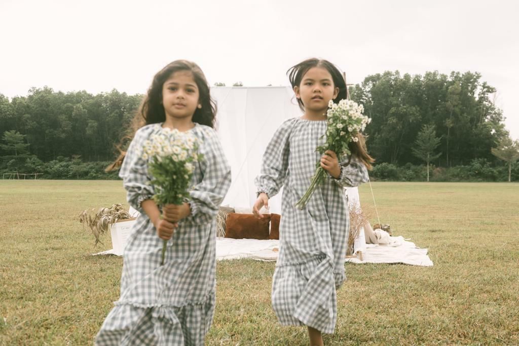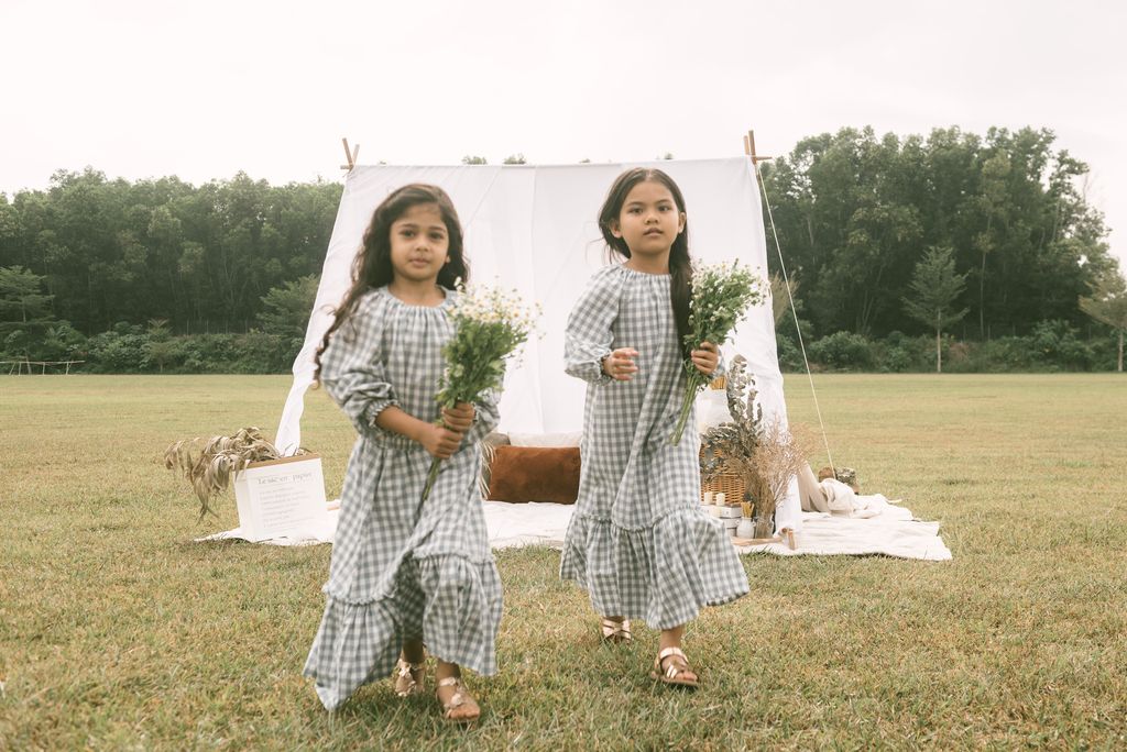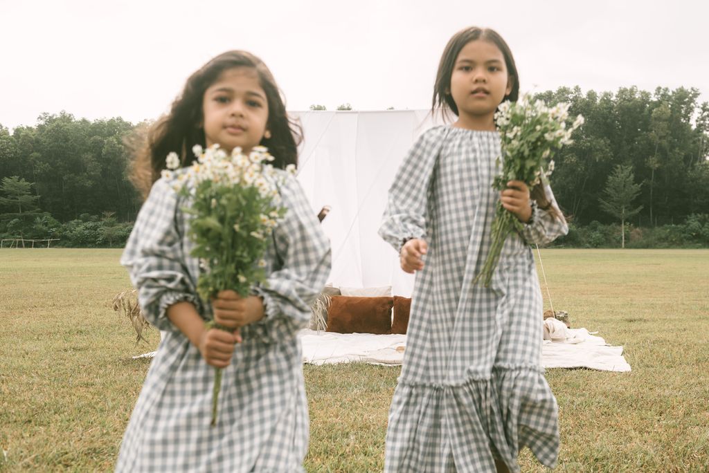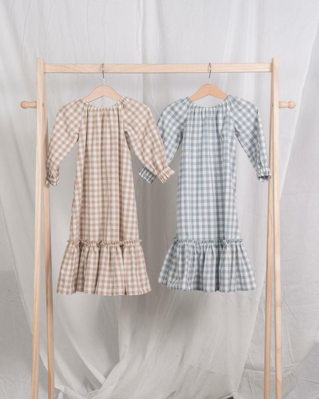 The Secret Garden Gathered Dress in Checkered Powder Blue