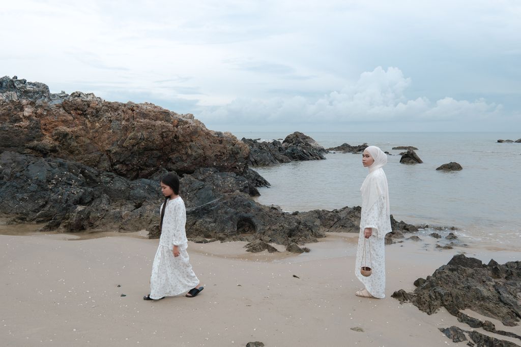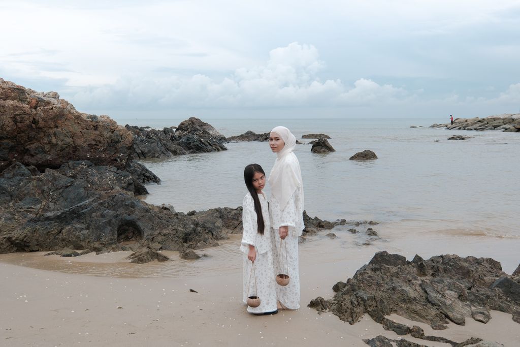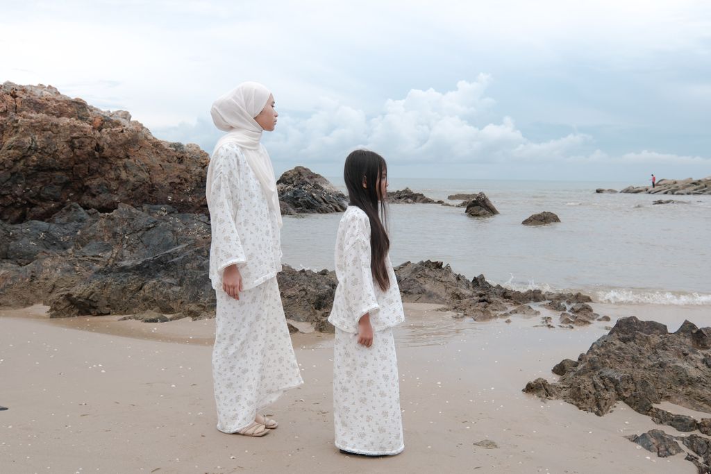 Introducing Bayuni, reinterpretation of the traditional kurung kedah cut, featuring a modern drop shoulder design.