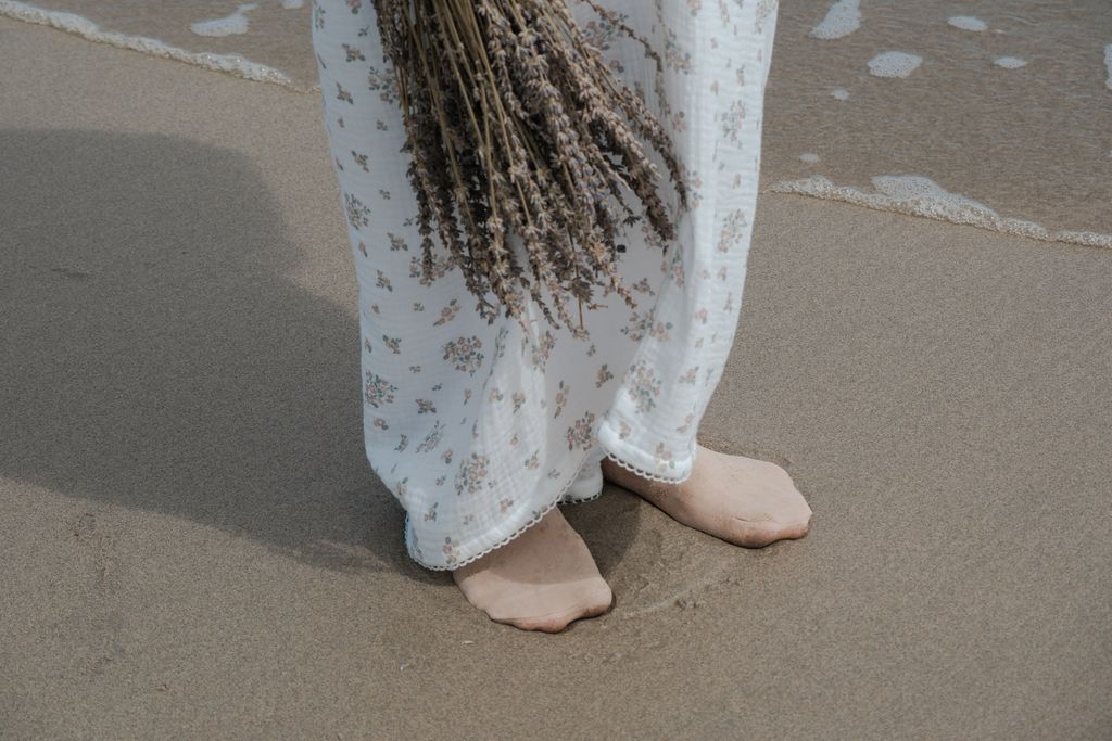 • Delicate lace detailing at the end of the sleeves, neckline and bottom.